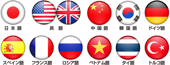 英語・中国語はもとより、アジア言語、ヨーロッパ言語など、さまざまな言語に対応いたします。